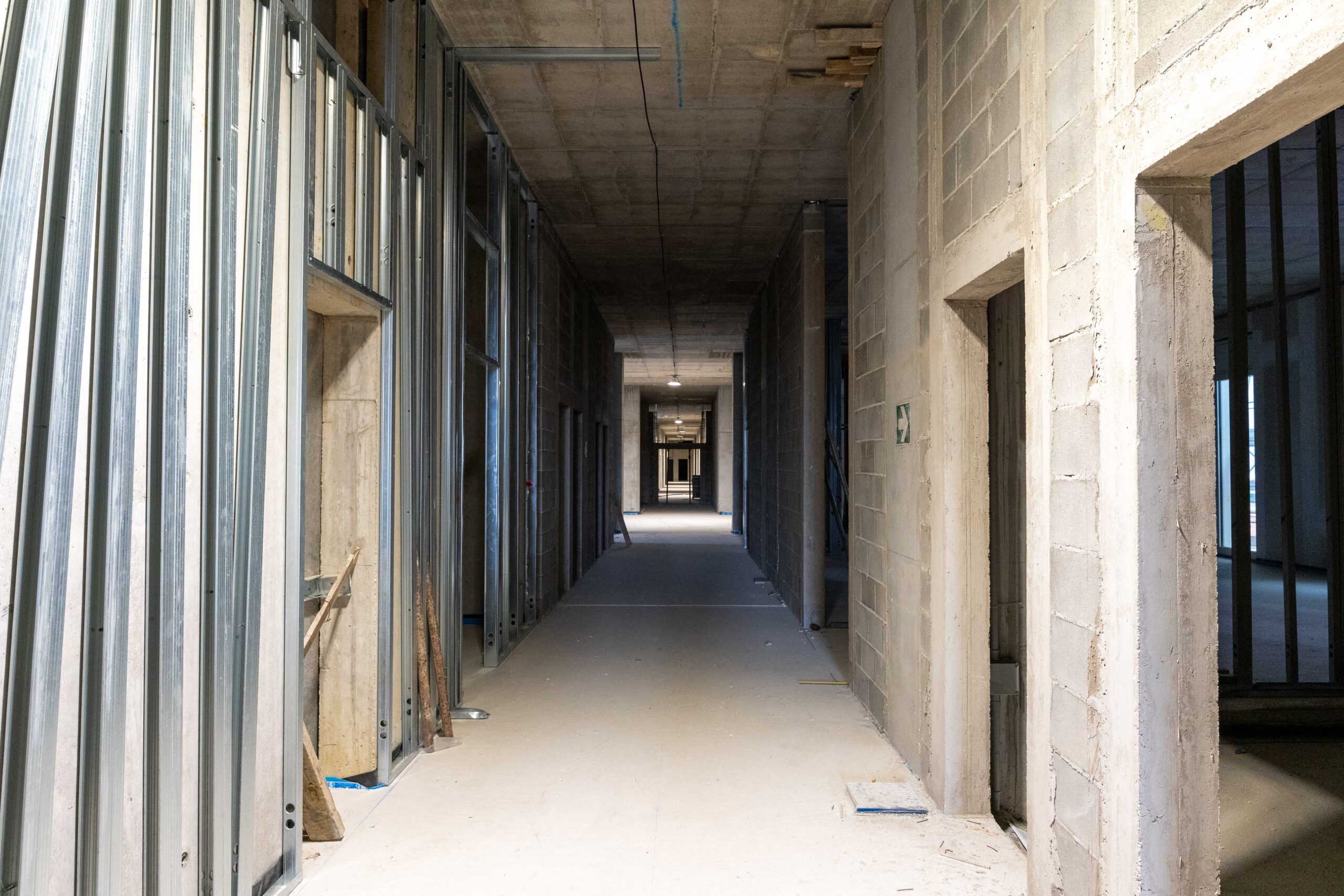 Il Nuovo Ospedale INRCA di Camerano è composto da 1 livello interrato e da 4 livelli fuori terra con una superficie di circa 15000-16000 m^2 per livello.