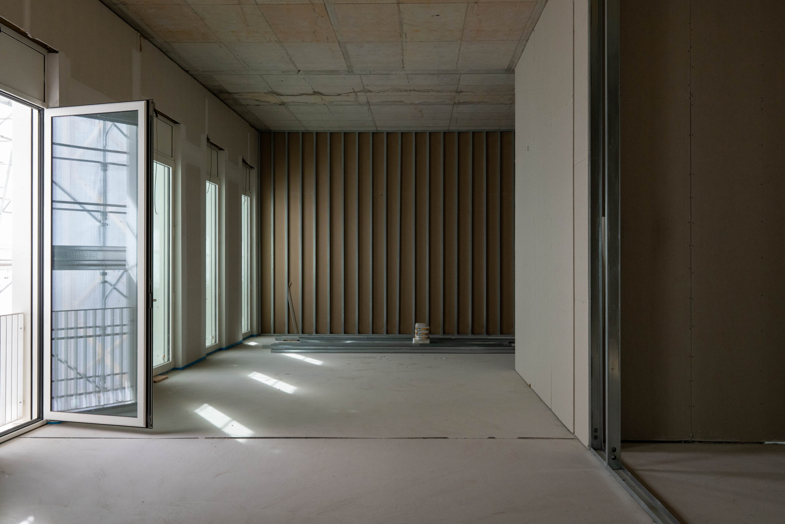 Gli altri fronti esterni perimetrali sono caratterizzati da paramento murario, scanditi da finestre singole verticali a tutt’altezza.