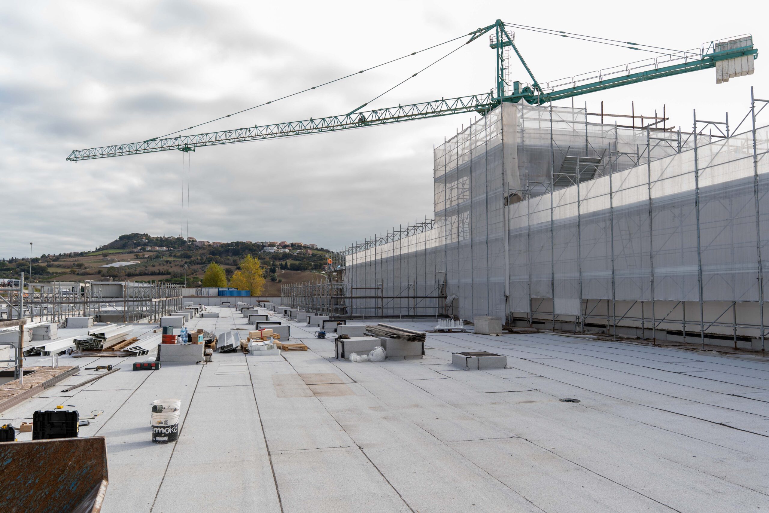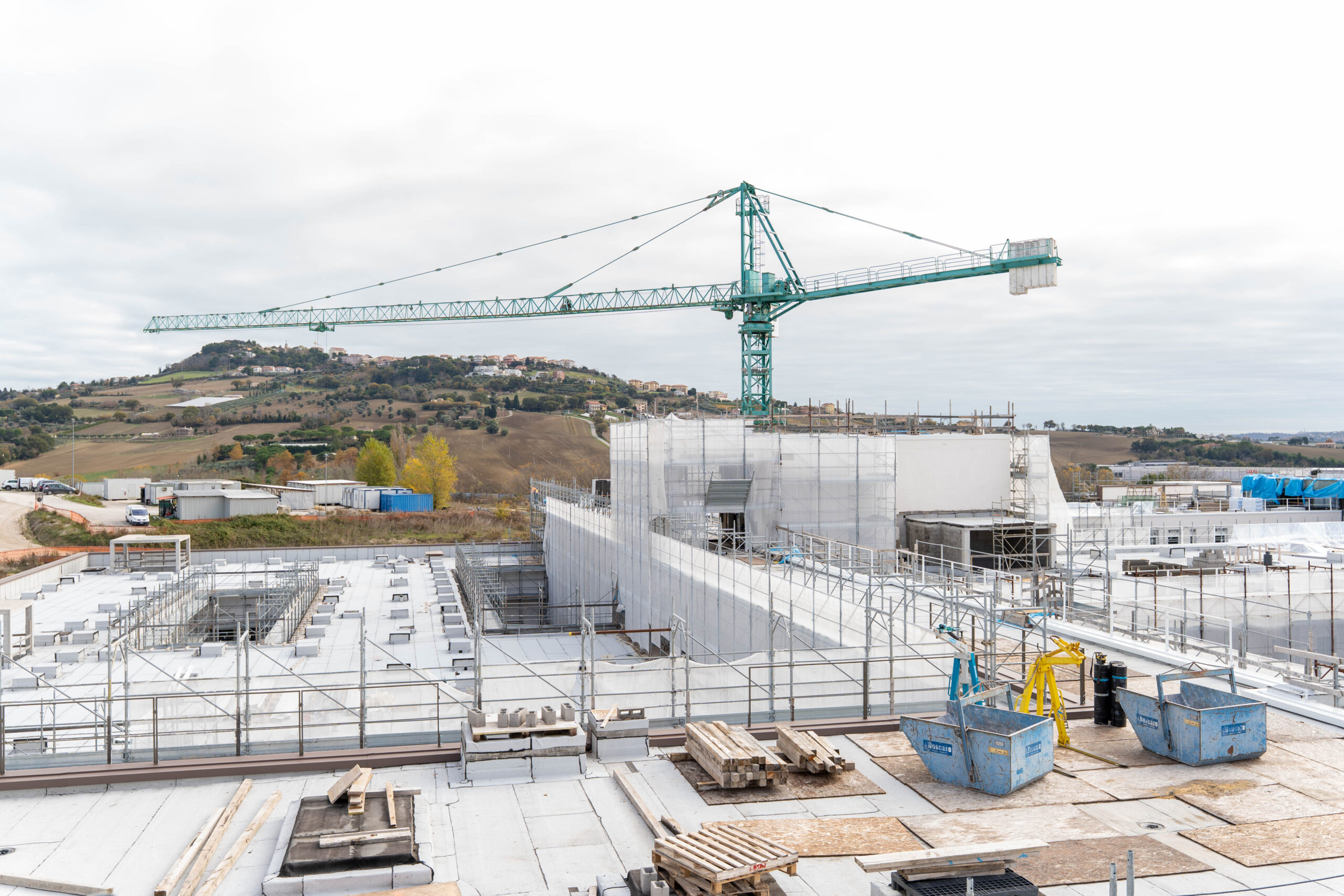 Procedono spediti i lavori di realizzazione del nuovo ospedale INRCA di Camerano (AN). Dopo mesi dall’ultimo aggiornamento sullo stato dei lavori, l’aspetto è entusiasticamente cambiato. La struttura, che fino a poco tempo fa si presentava in uno stato di manufatto grezzo, ha visto cambiare la sua visuale. Lo stato dei lavori, visionabile al seguente video documenta la crescita di due piani. Gli ultimi secondo il progetto, più il quinto livello dove sorge la torretta che fungerà da eliporto.